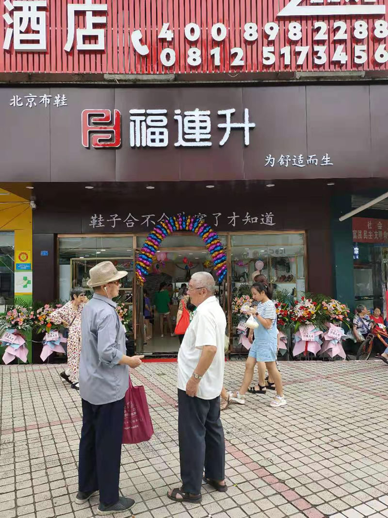 在此,福连升健康休闲中年鞋(原福连升(原福联升)老北京布鞋)全体员工祝贺:福连升中年鞋四川攀枝花仁和店重装开业大吉、生意红火、财源广进!诚邀各地有志之士加盟合作,共享辉煌!